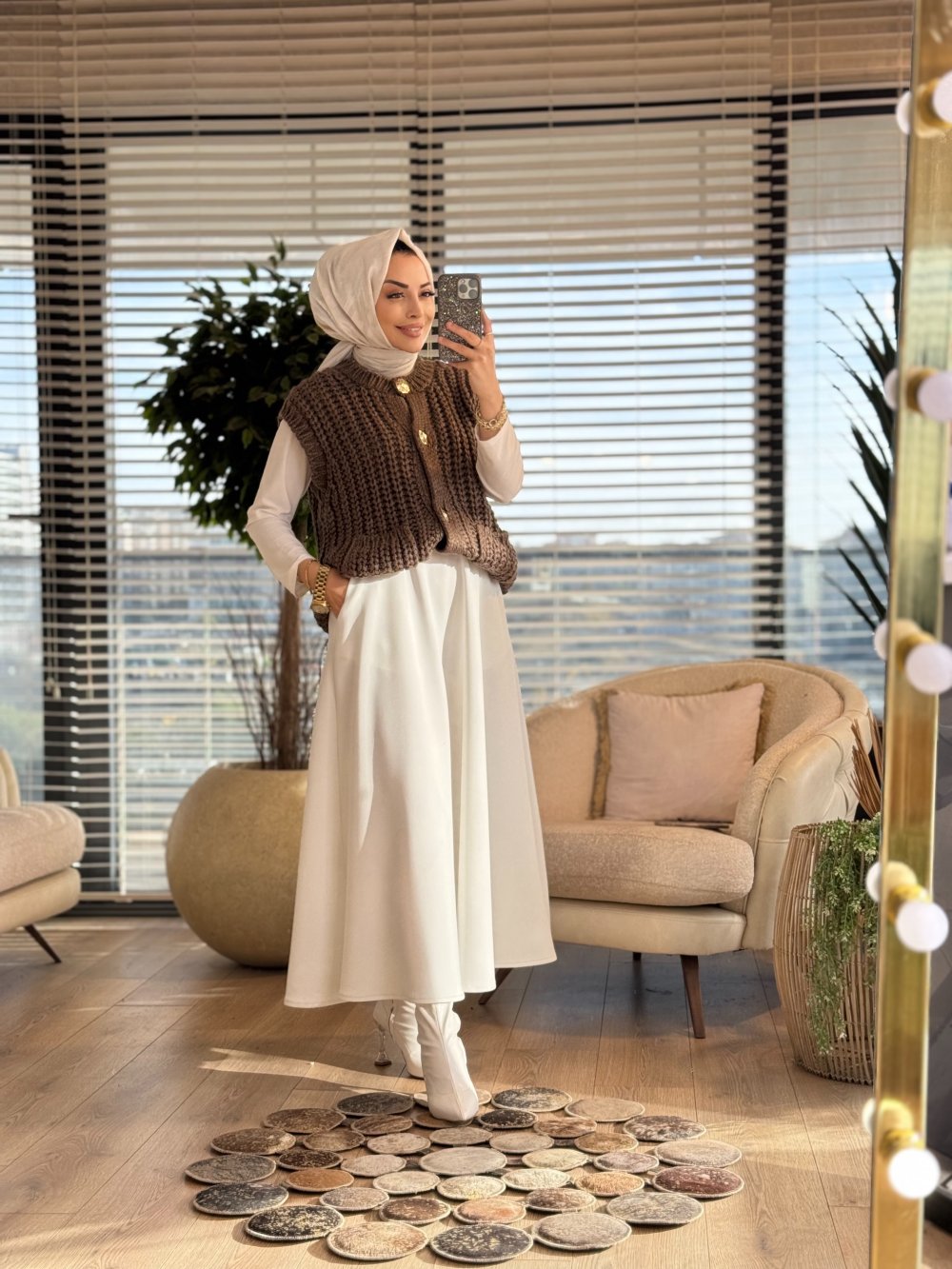 1005391 Metal Düğmeli Triko Yelek Kahve