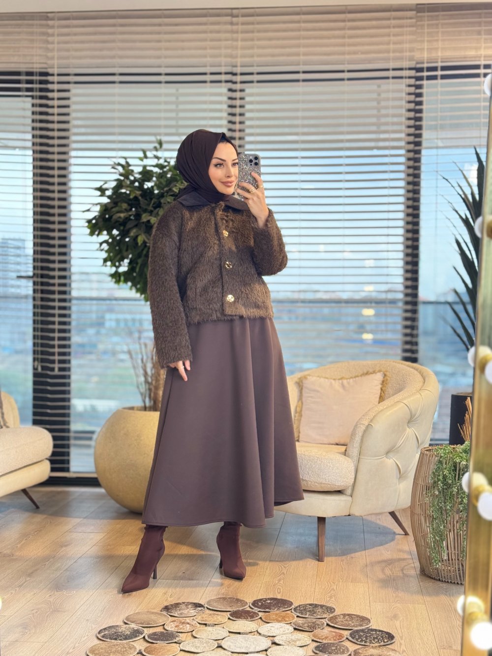 1005393 Kadife Yakalı Kürk Ceket Kahve