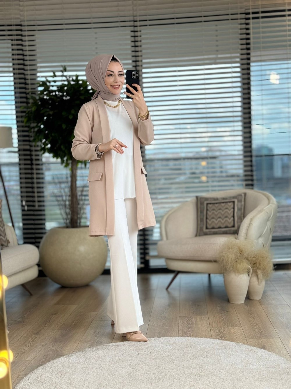 1045 Ön İki Cep Kapaklı Şal Yaka Ceket Bej