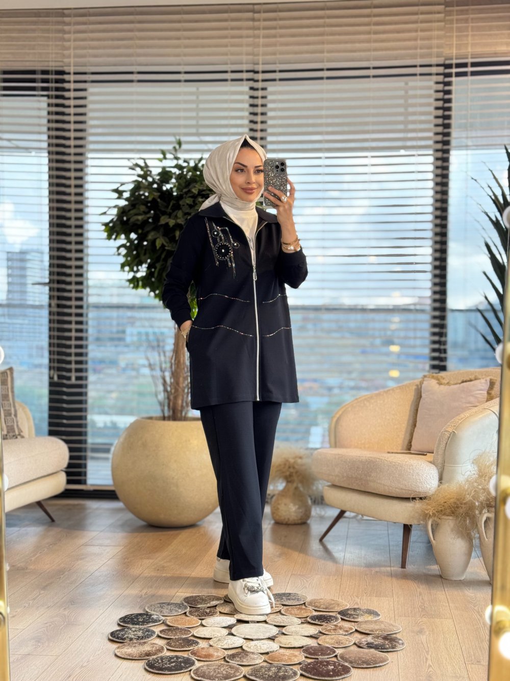 10727 Taş Arma Baskılı Üçlü Takım Siyah