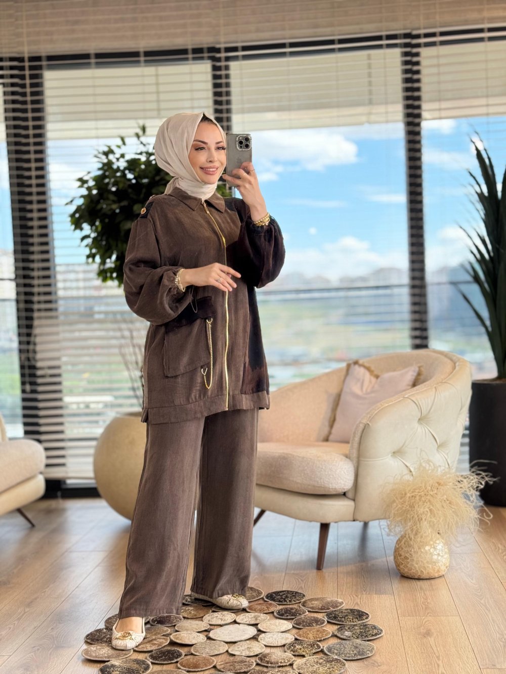 10753 Sağ Taraf Desenli Cebi Zincirli Takım Kahve
