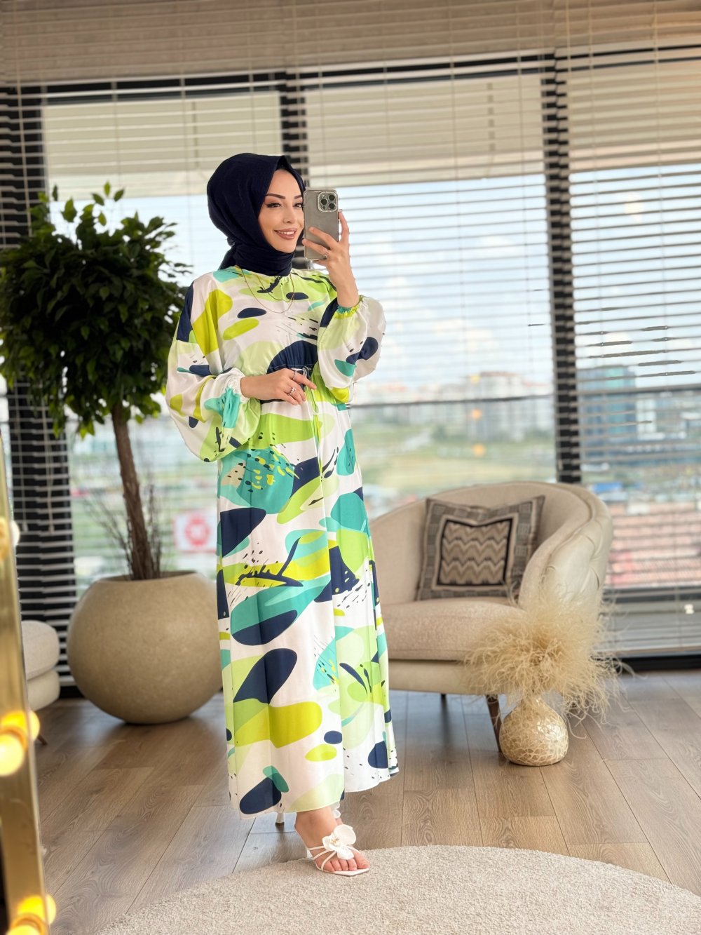 1149 Beli Tünelli Elbise Yağ Yeşili
