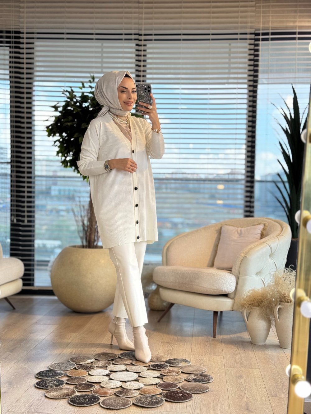 115 Boyuna Fitilli Hırka Ekru