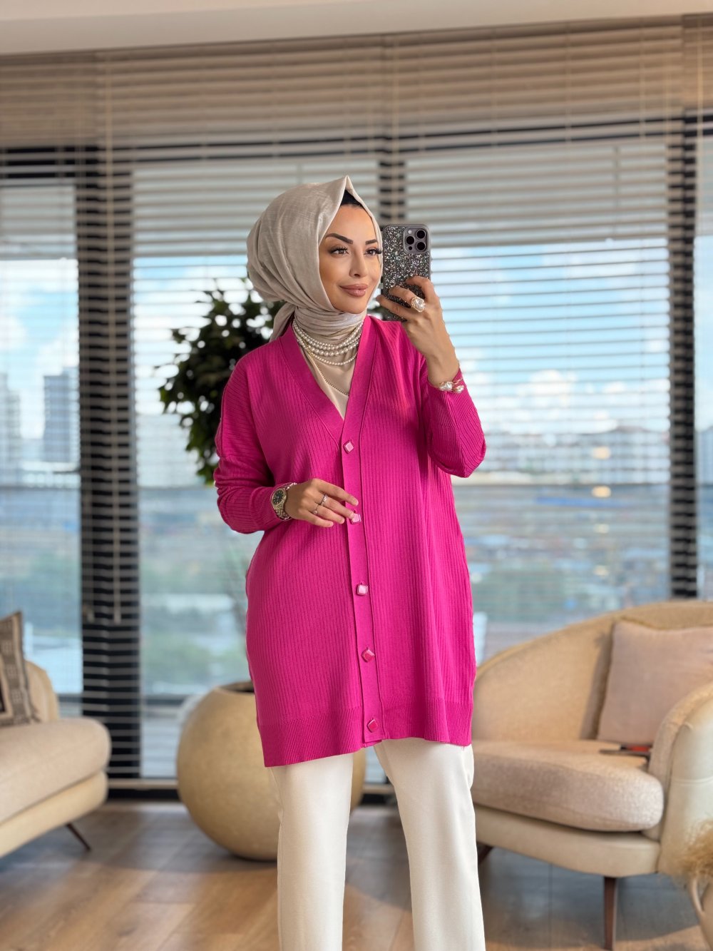 115 Boyuna Fitilli Hırka Fuşya