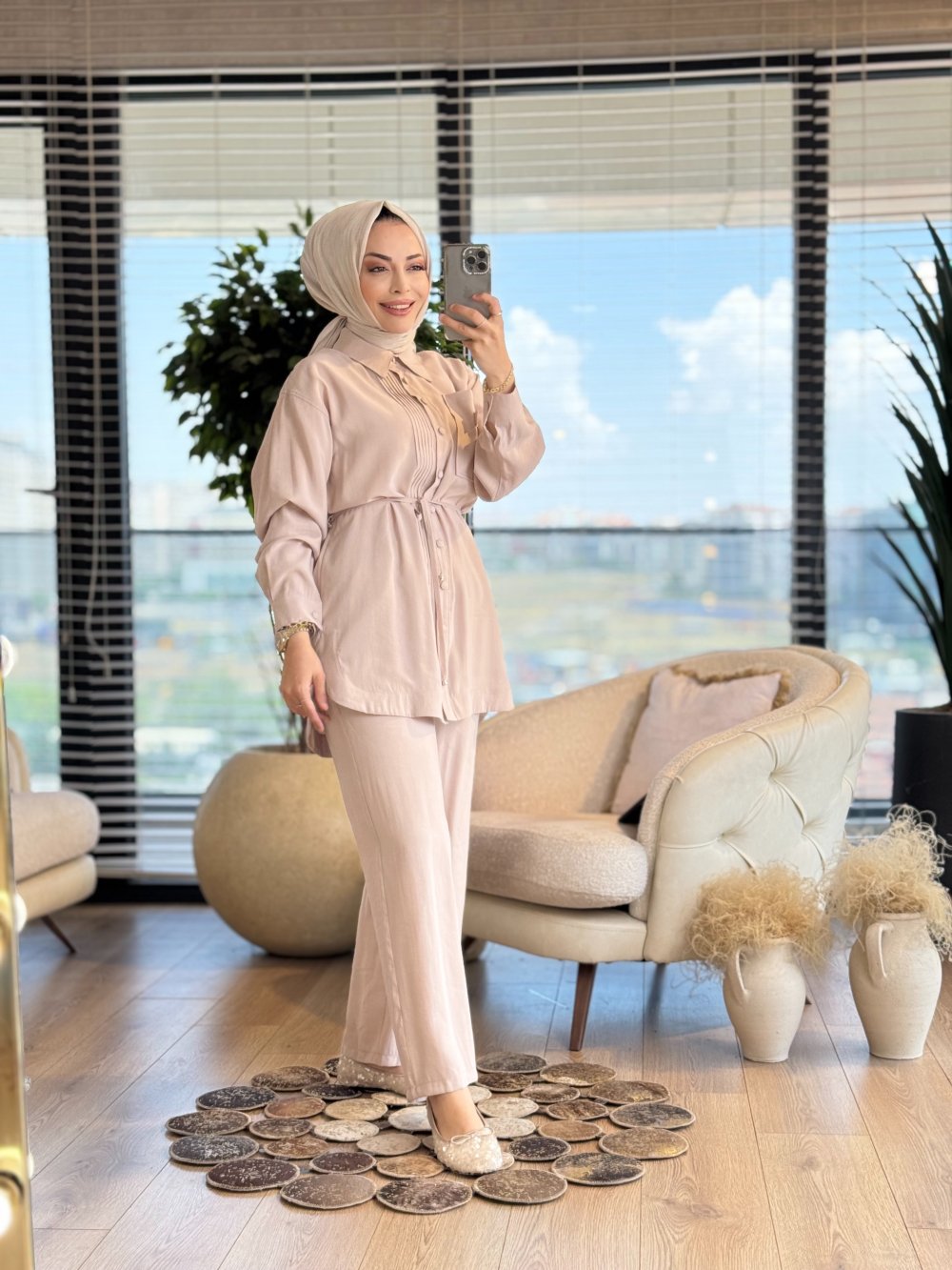 1335 Ön Ve Cep Üstü Nervür Dikişli Takım Bej