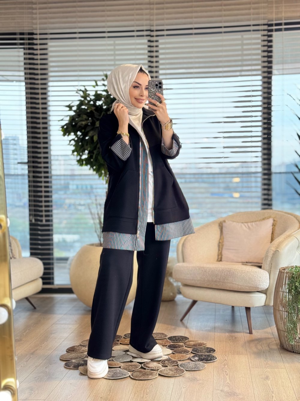 14383 Etek Ucu Ve Manşeti Çizgili Takım Siyah