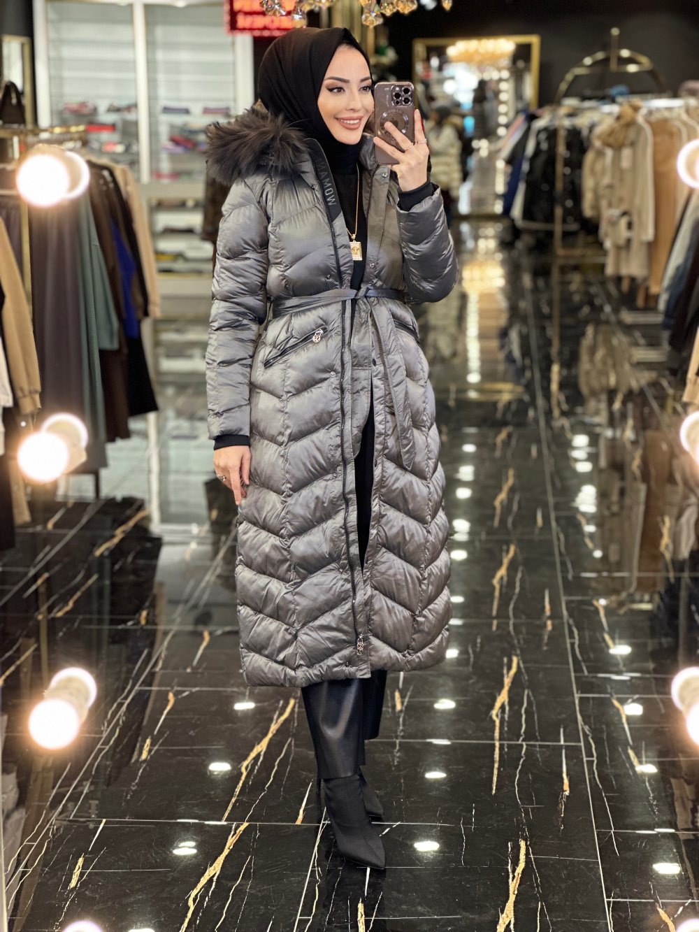 18692 X Jacket Şişme Kapş.Kürklü Kaban Gri
