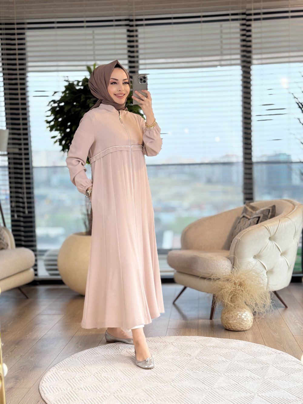2040 Ön Ve Arkası Su Taş Detaylı Kap Bej