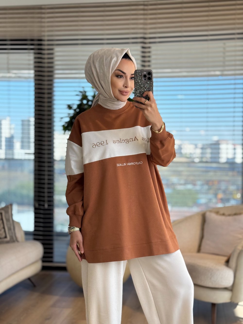 2046 Ön Los Angeles Yazılı Sweat Taba