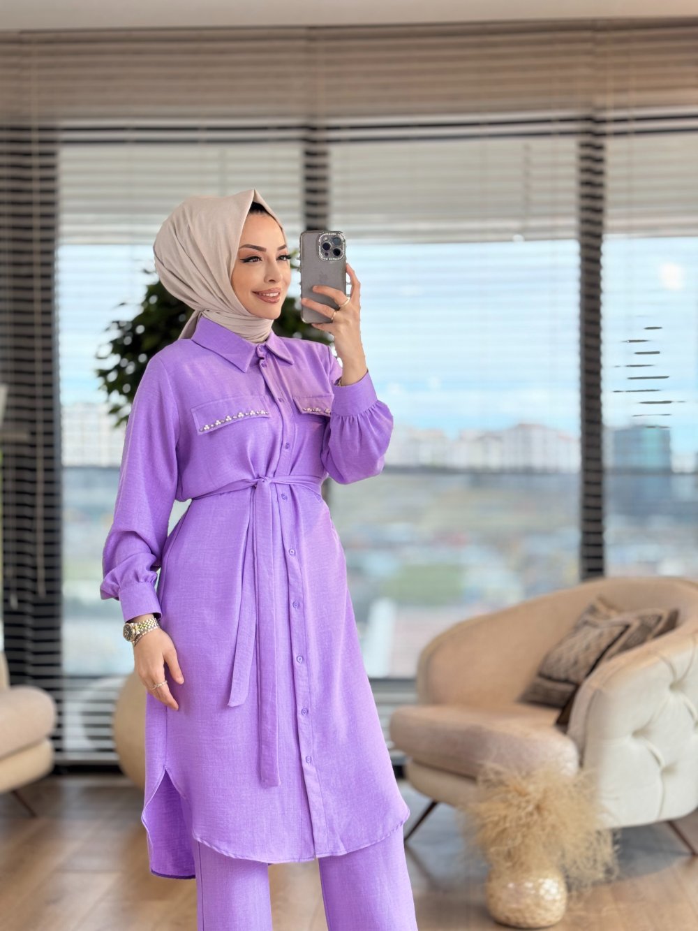 Tunik ön boy 105 cm, arka boy 112 cm, pantolon boy 106 cm