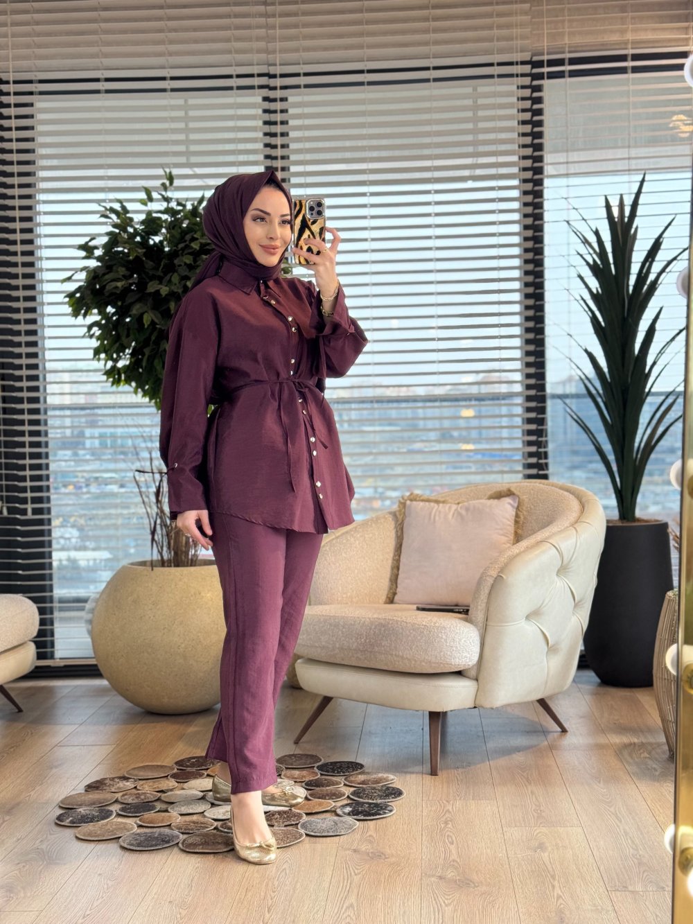 22678 Kolları Bağcıklı Metal Düğmeli Takım Bordo