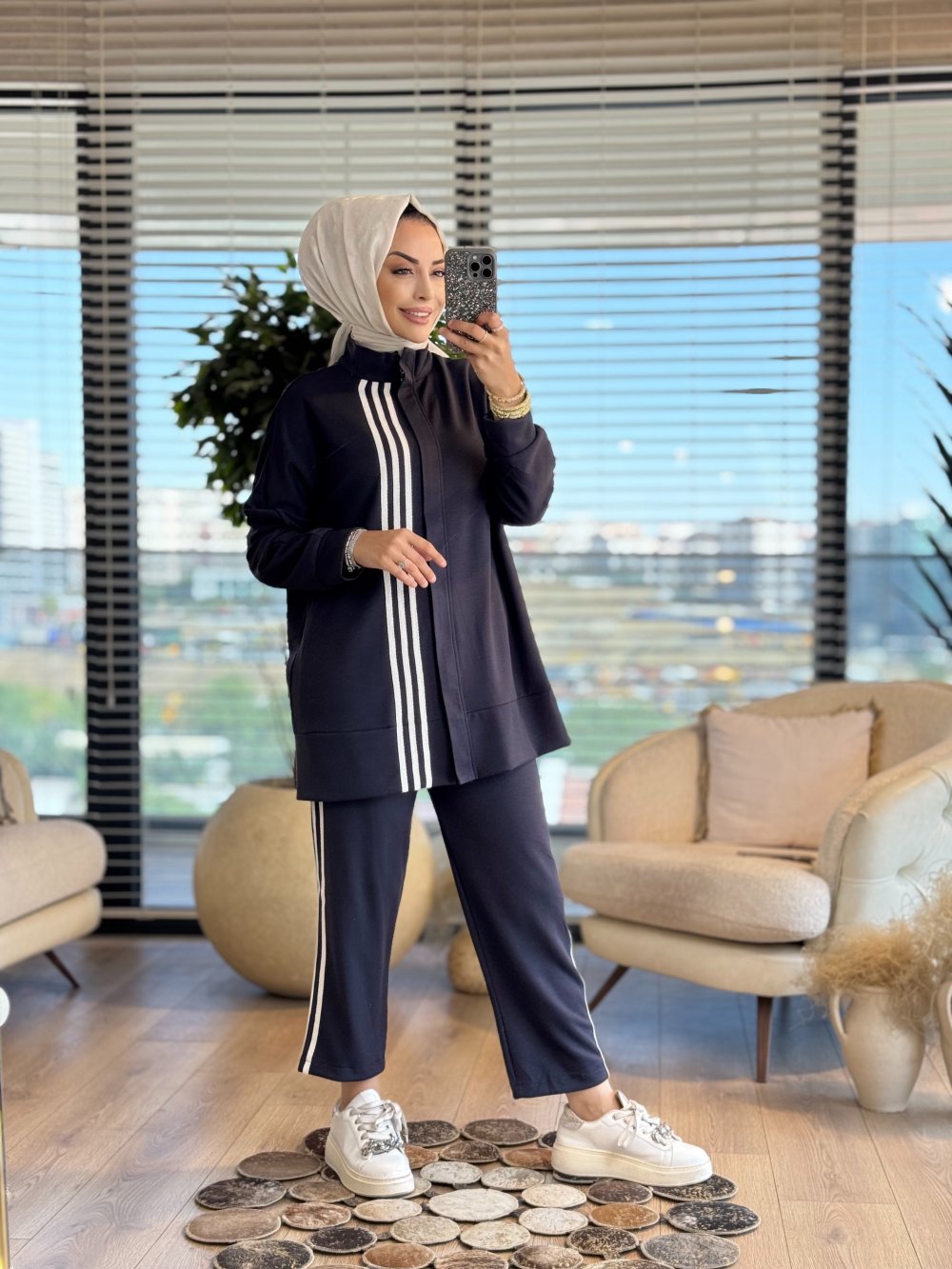 22754 Ön Ve Pantolon Yanı Çizgili Takım