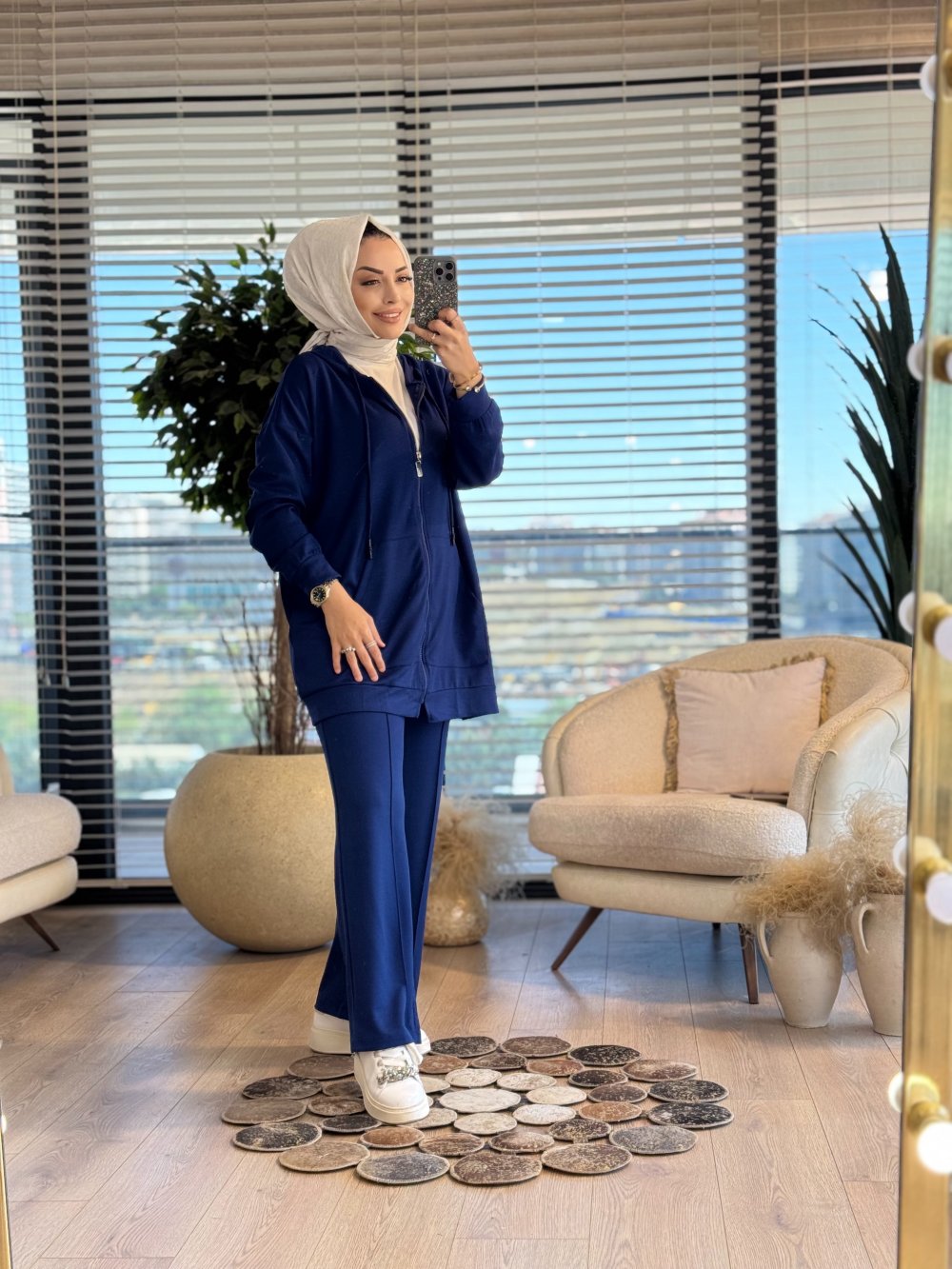 2319 Kapşonlu Önü Fermuarlı Takım Lacivert