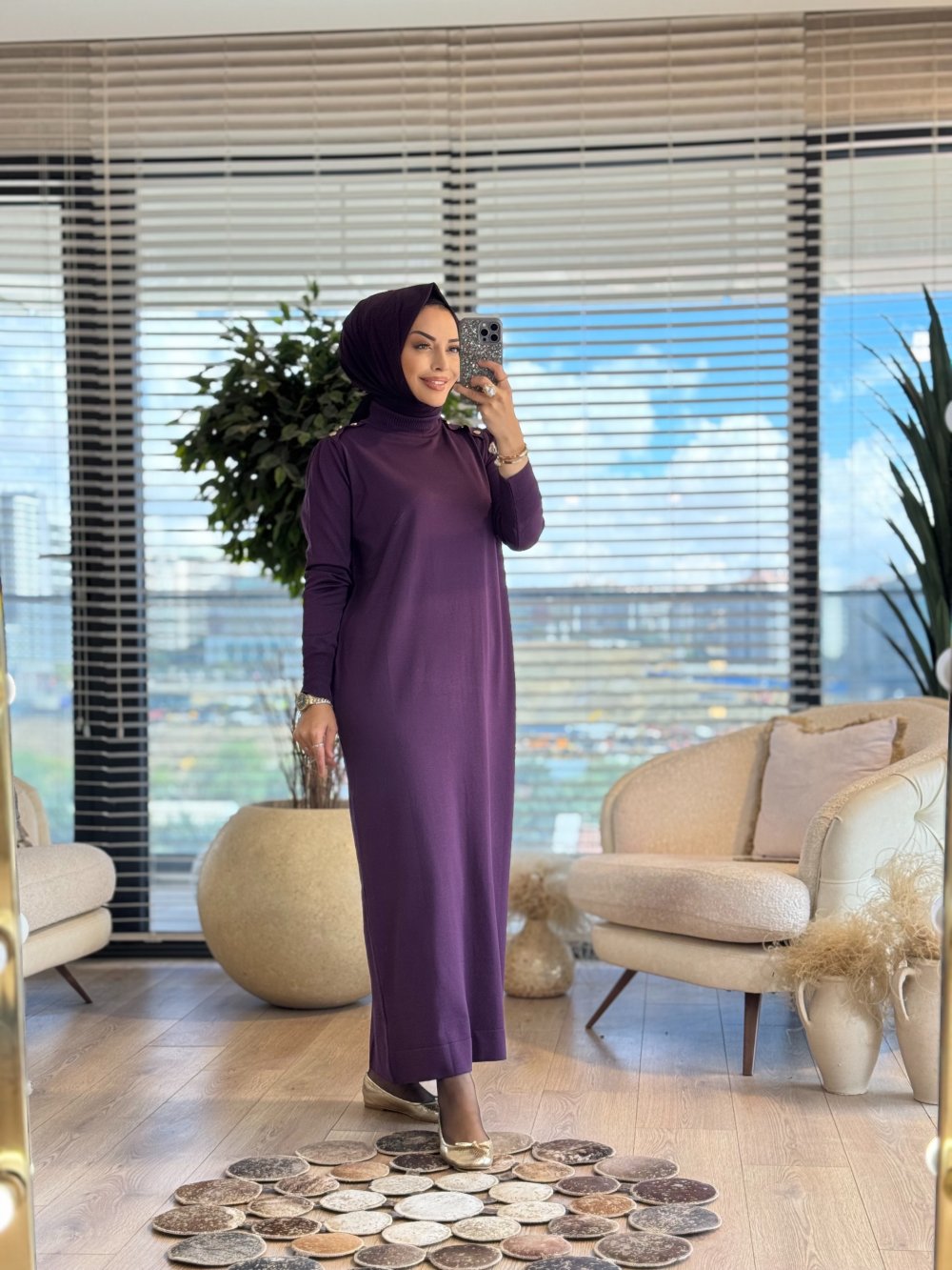 232 Omuzu Apoletli Triko Elbise Mürdüm