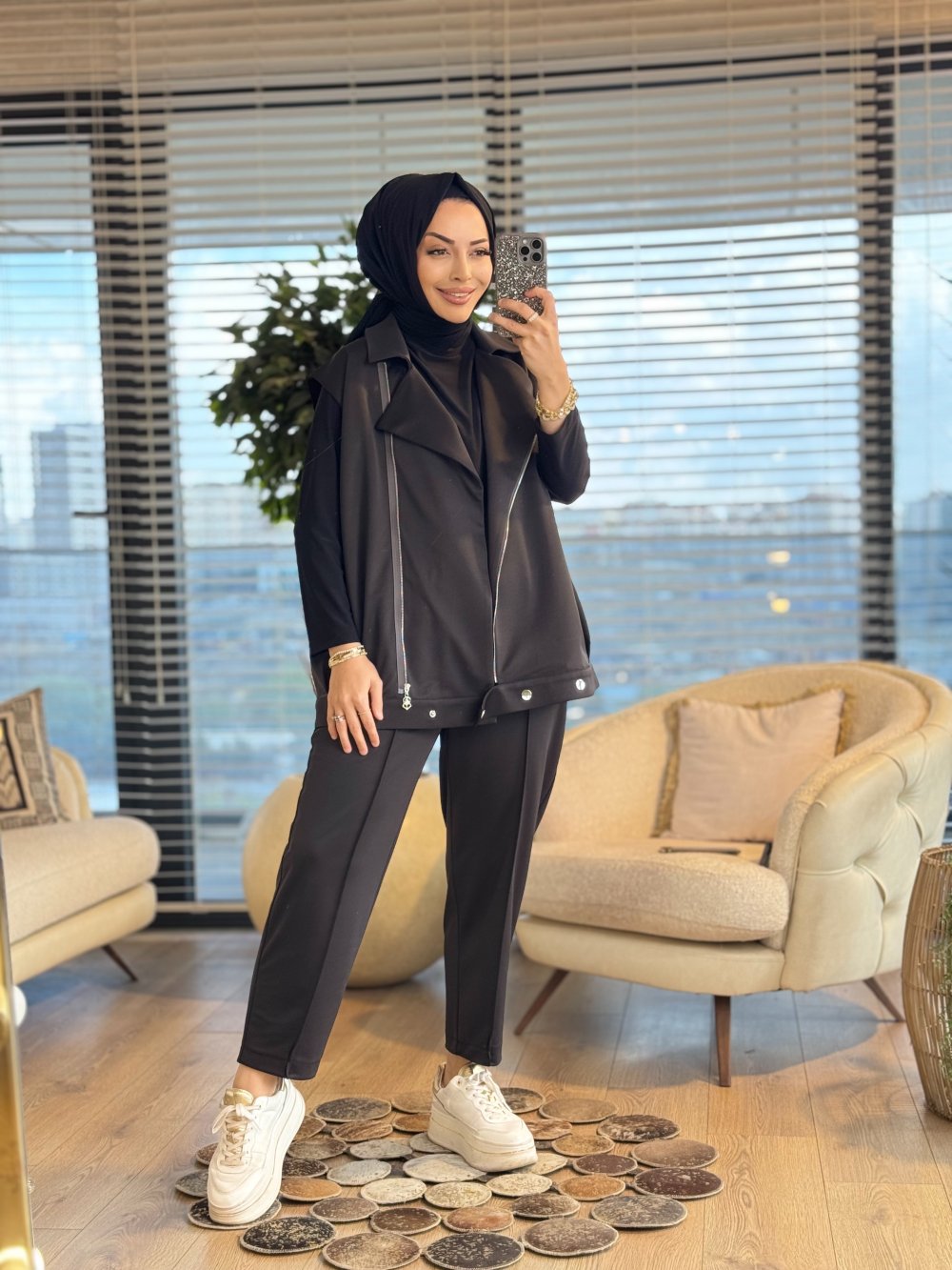 2428 Üst Yelekli Fermuarlı Takım Siyah
