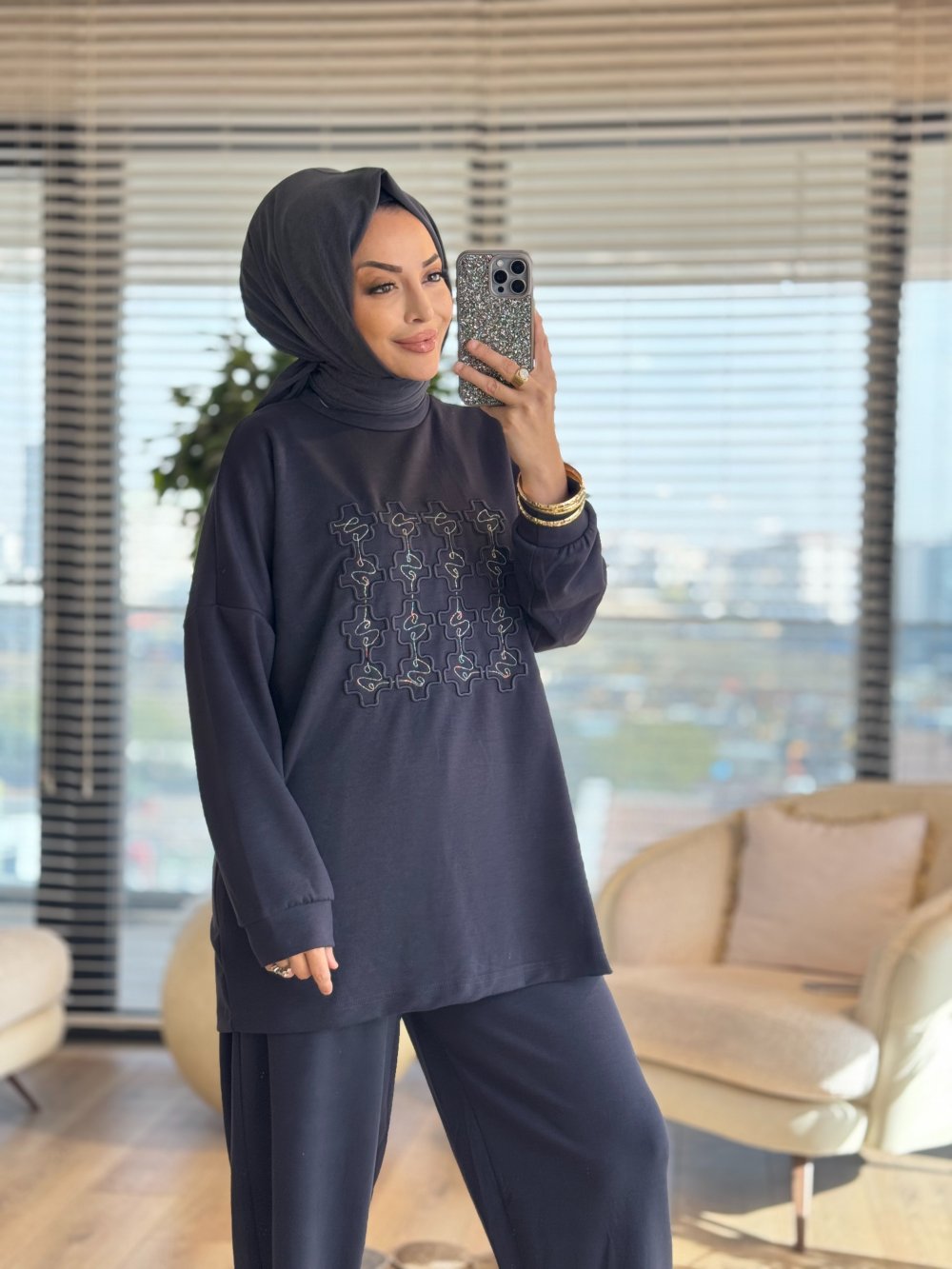 24360 Önü Nakış Detaylı Tunik Antrasit