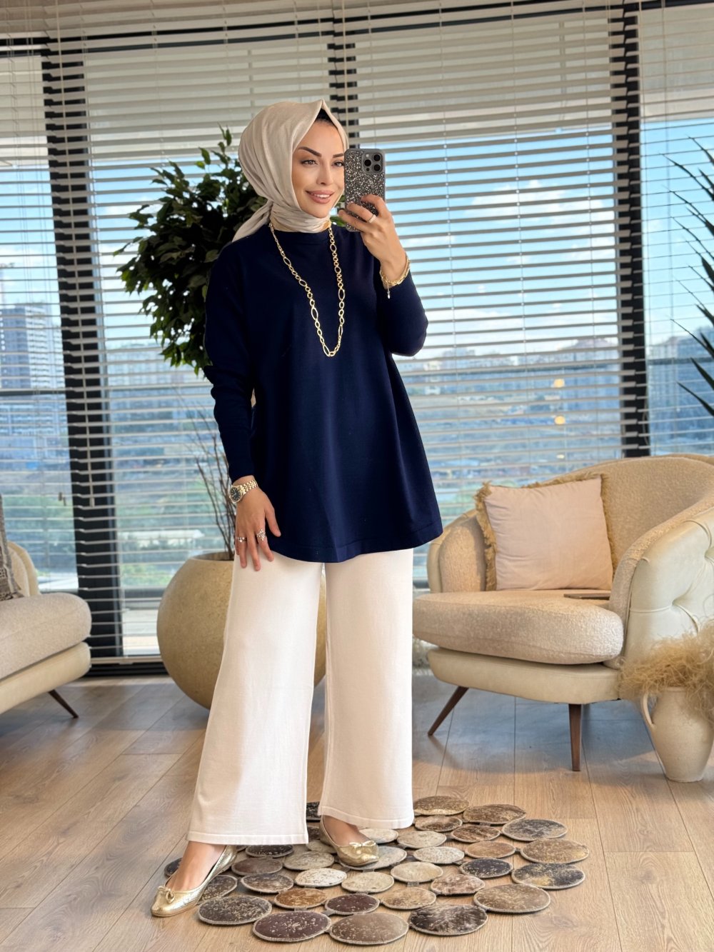 25004 Eteği Oval Sıfır Yaka Triko Tunik Lacivert