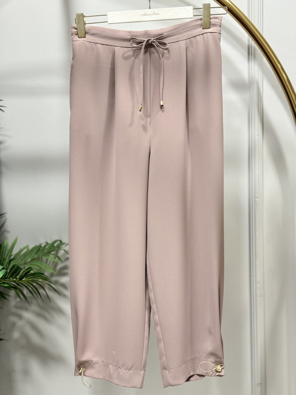 25092 Paçası Lastik Geçmeli Pantolon Bej