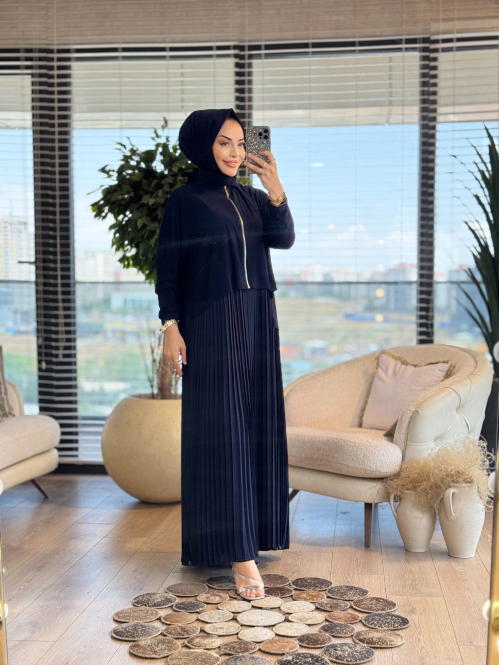 25132 Elbisesi Şifon Piliseli 2li Takım Lacivert