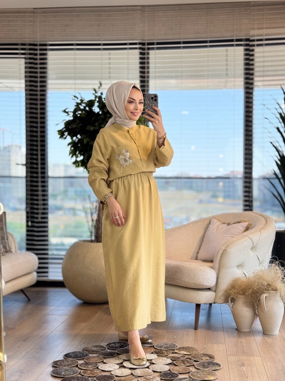 25446 Cebi Boncuk İşli Patı Düğmeli Takım Asit