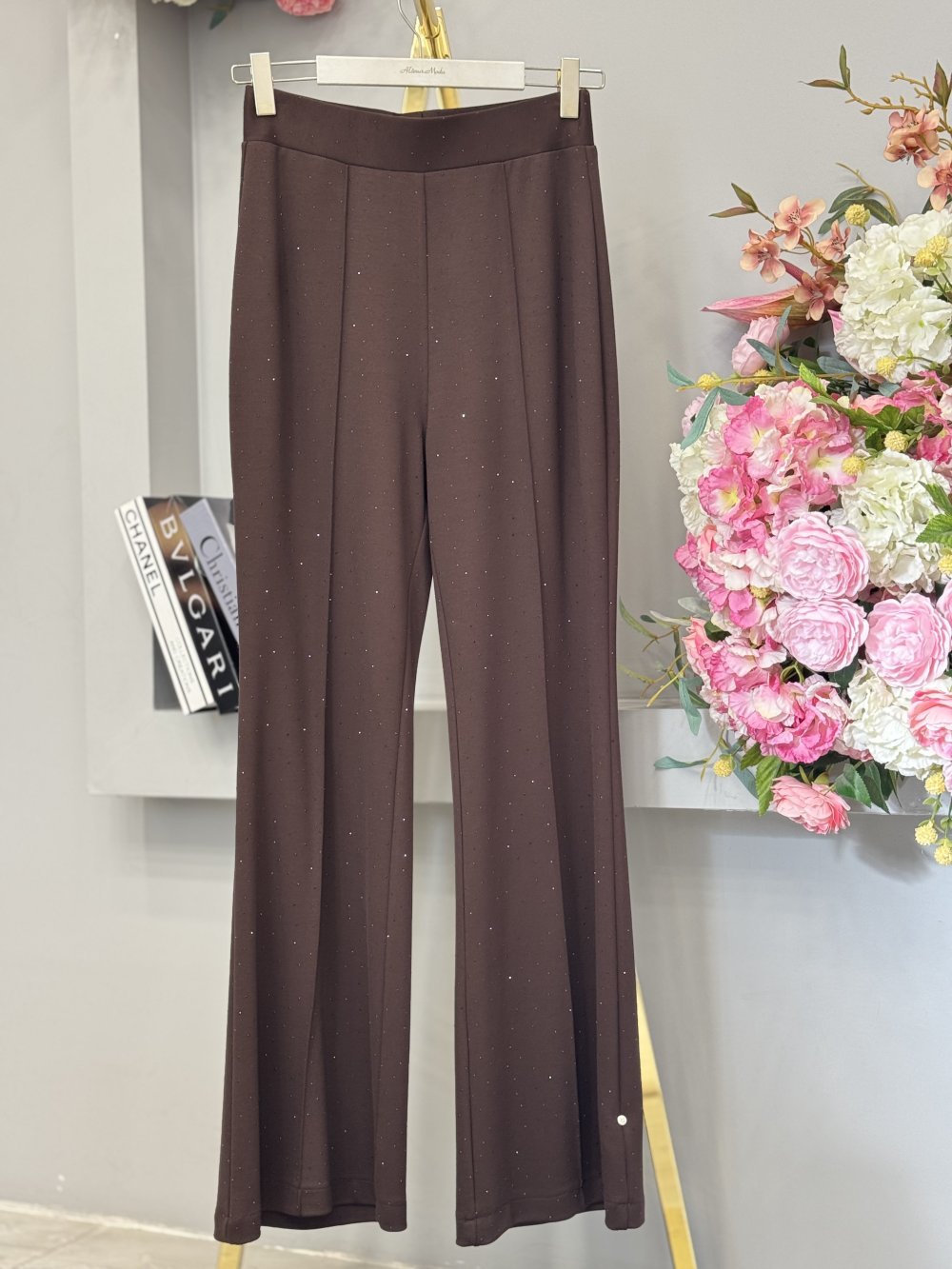 25547 Önü Taş Baskılı İspanyol Paça Pantolon Kahve