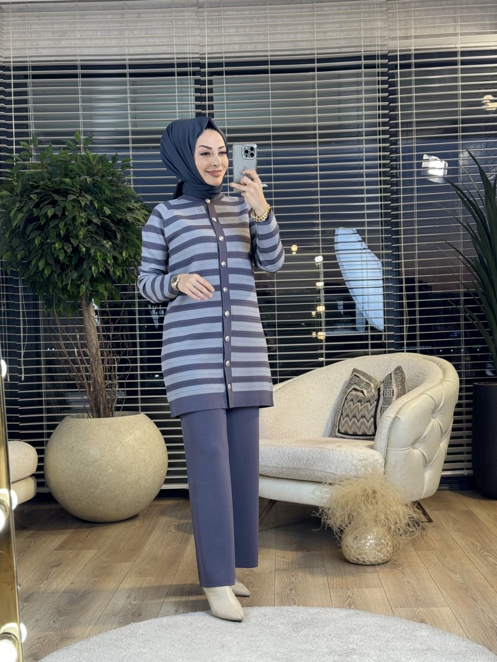 25K1511 Enine Çizgili Triko Pantolonlu Takım Füme