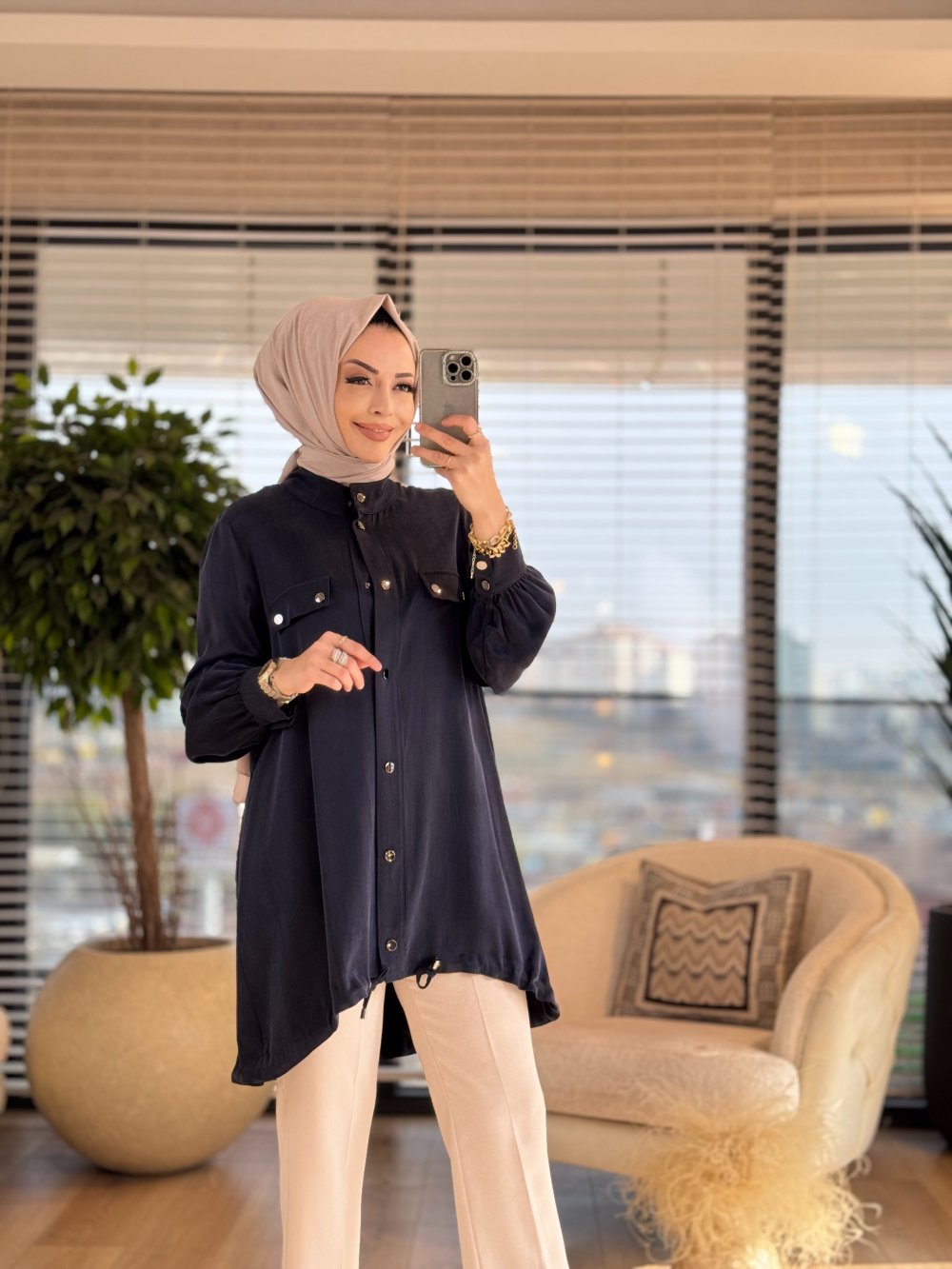 25K6007 Ön Ve Cep Kapağı Çıtçıtlı Kap Lacivert