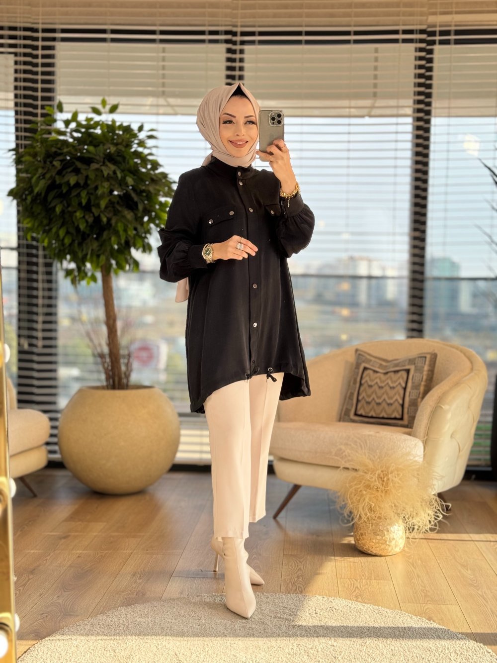25K6007 Ön Ve Cep Kapağı Çıtçıtlı Kap Siyah