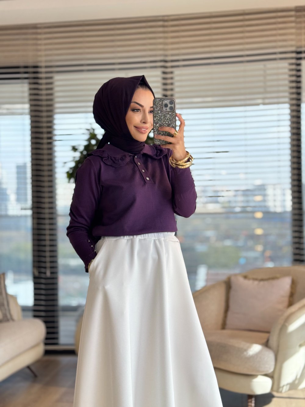 260 Dantelli Bebe Yaka Triko Tunik Mürdüm