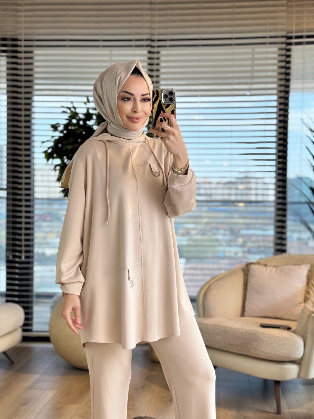 26605 Efsun Kapşonlu Oshyo Takım Bej