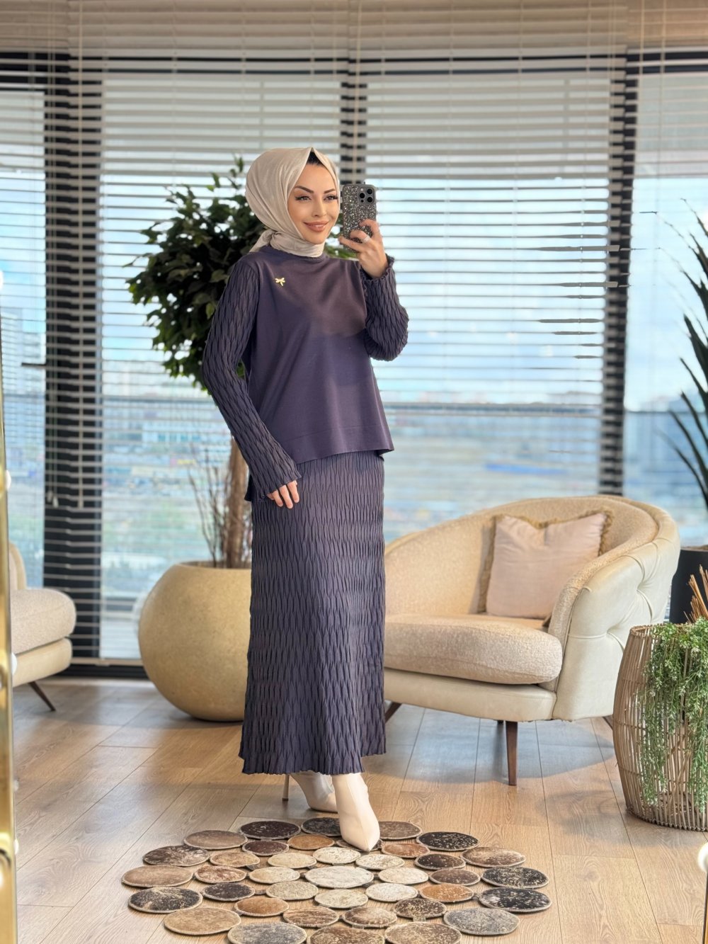 271 Mandal Desenli Triko Etekli Takım Antrasit