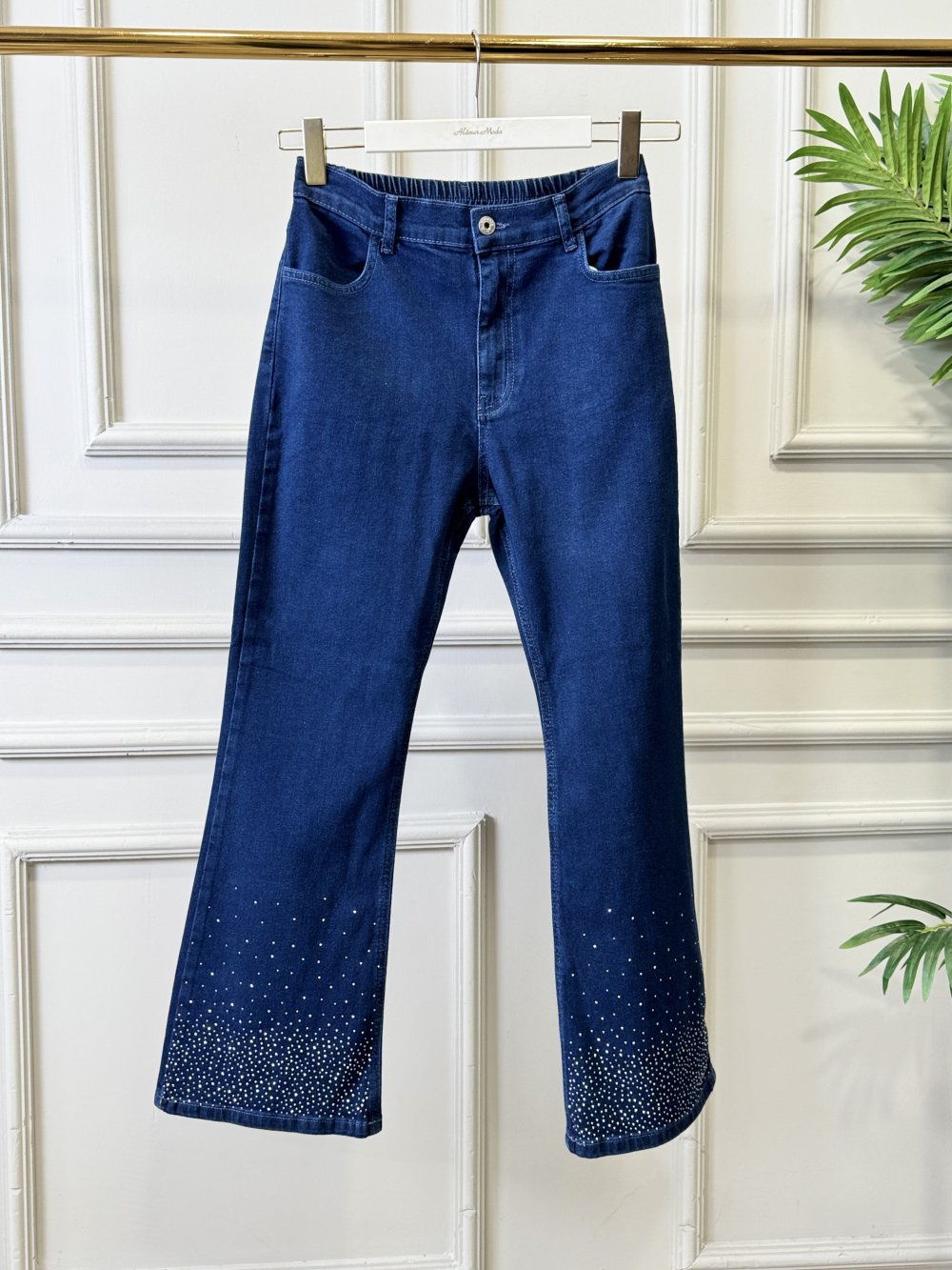 2802 Kot Paçası Serpme Taşlı Pantolon Lacivert