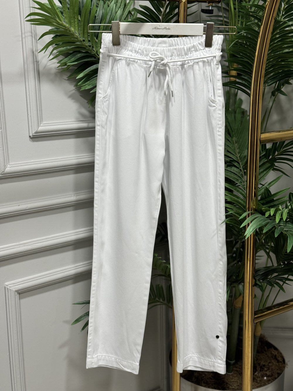 2803 Kot Bel Bağcıklı Havuç Pantolon Beyaz