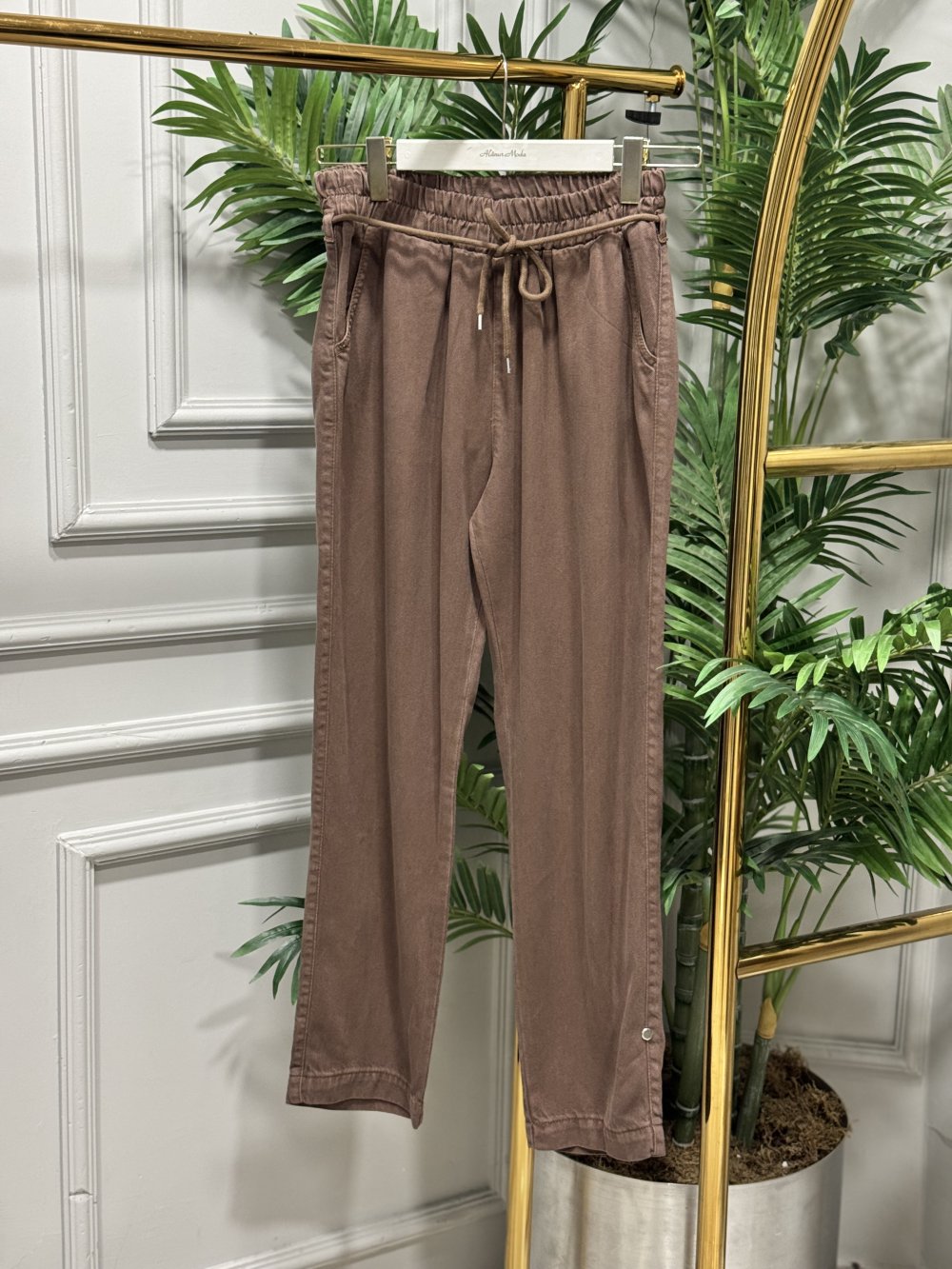 2803 Kot Bel Bağcıklı Havuç Pantolon Kahve