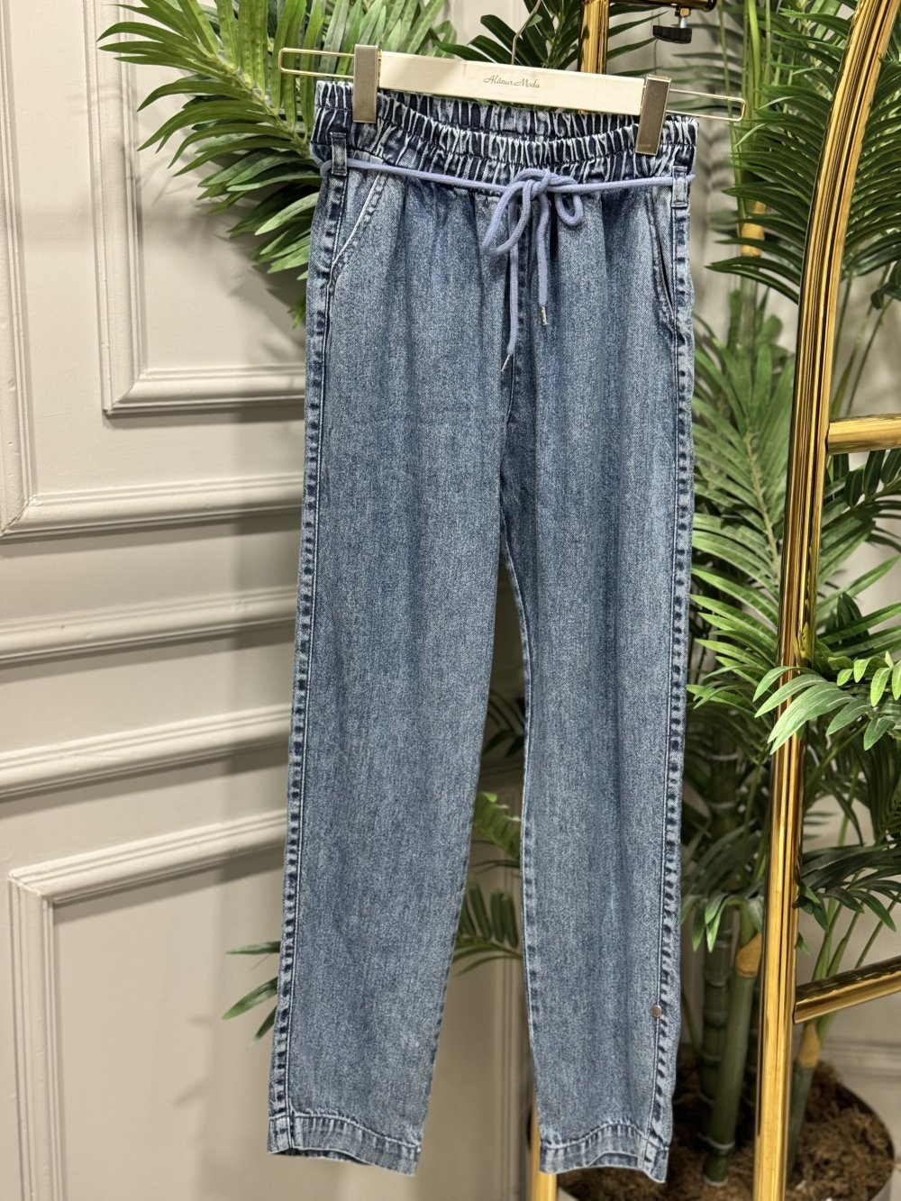 2803 Kot Bel Bağcıklı Havuç Pantolon Mavi