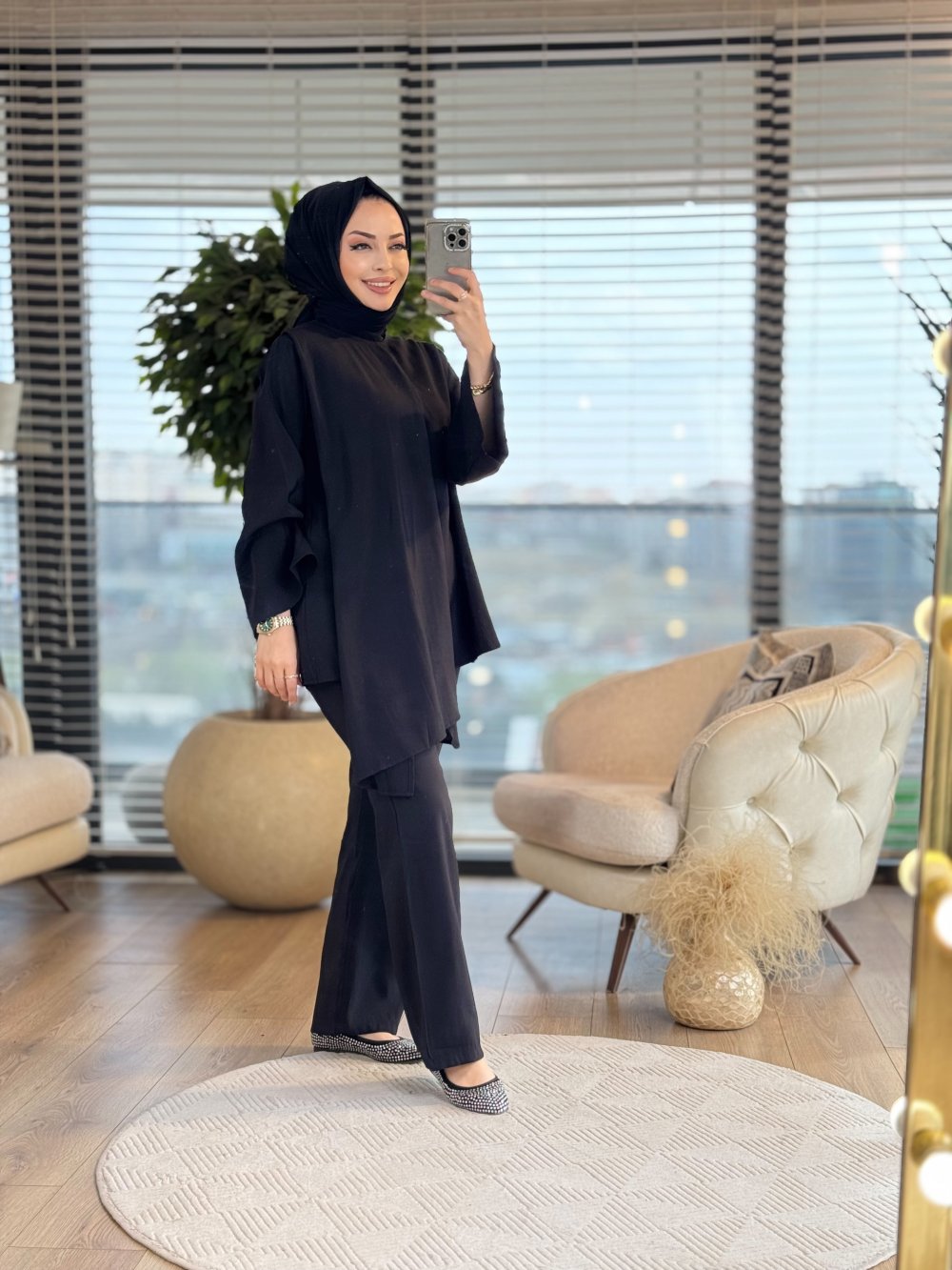 Tunik kısa taraf 74-78 cm, uzun taraf 80-95 cm, pantolon 105 cm