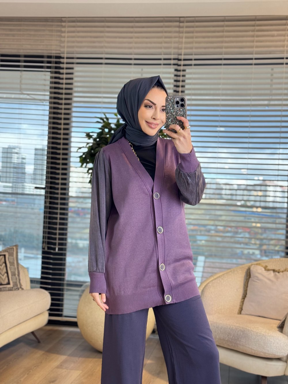 288 Kupra Kumaş Kol Hırka Siyah