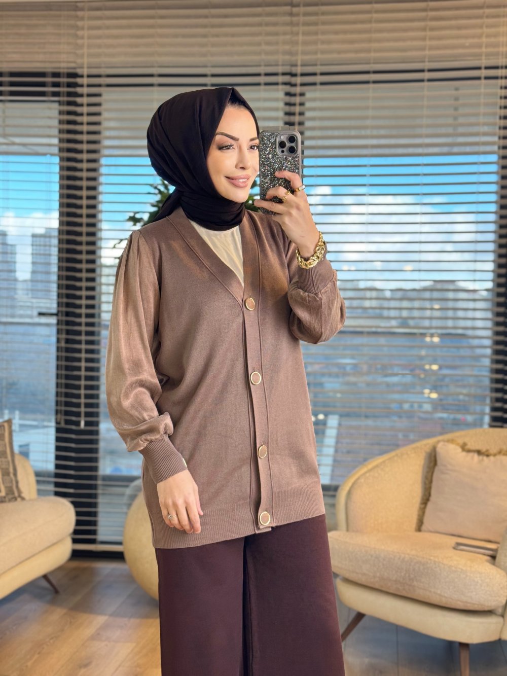 288 Kupra Kumaş Kol Hırka Vizon