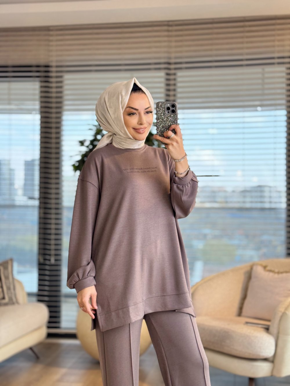 3149 Önü Baskı Detaylı Rahat Takım Toprak