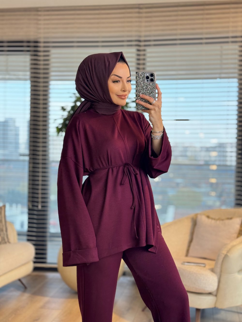 3179 Dikiş Ve Yırtmaç Detaylı Takım Bordo