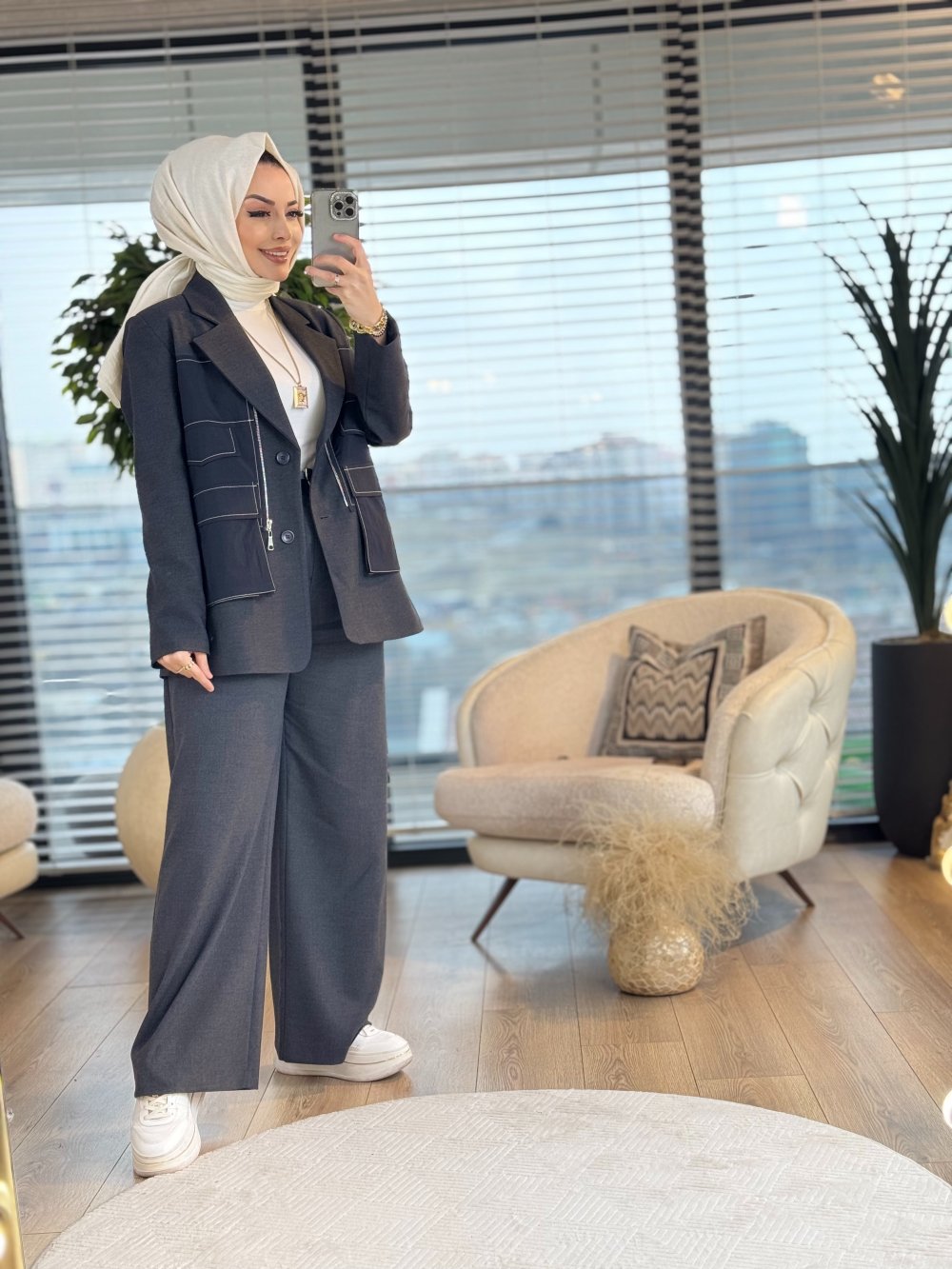 32151 Ön Dikiş Ve Cepli Ceket Antrasit