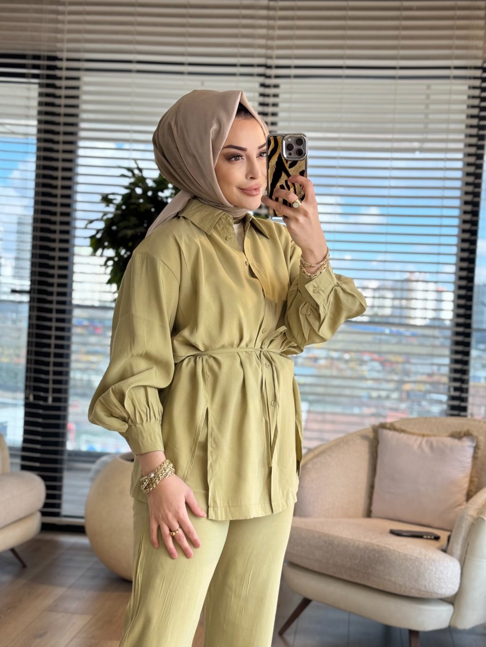 3230 Yırtmaç Detaylı Takım Yağ Yeşili