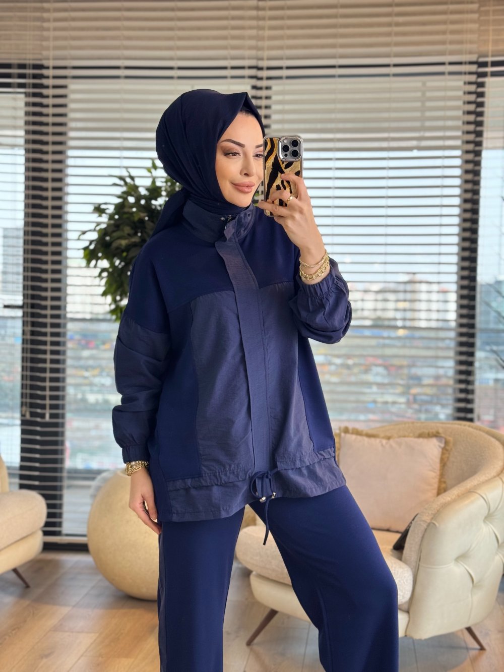 3287 Garni Detaylı Bağcıklı Takım Lacivert