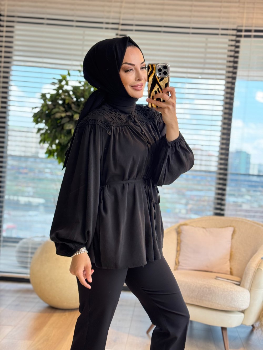 3356 Omzu Nakış Detaylı Gömlek Siyah