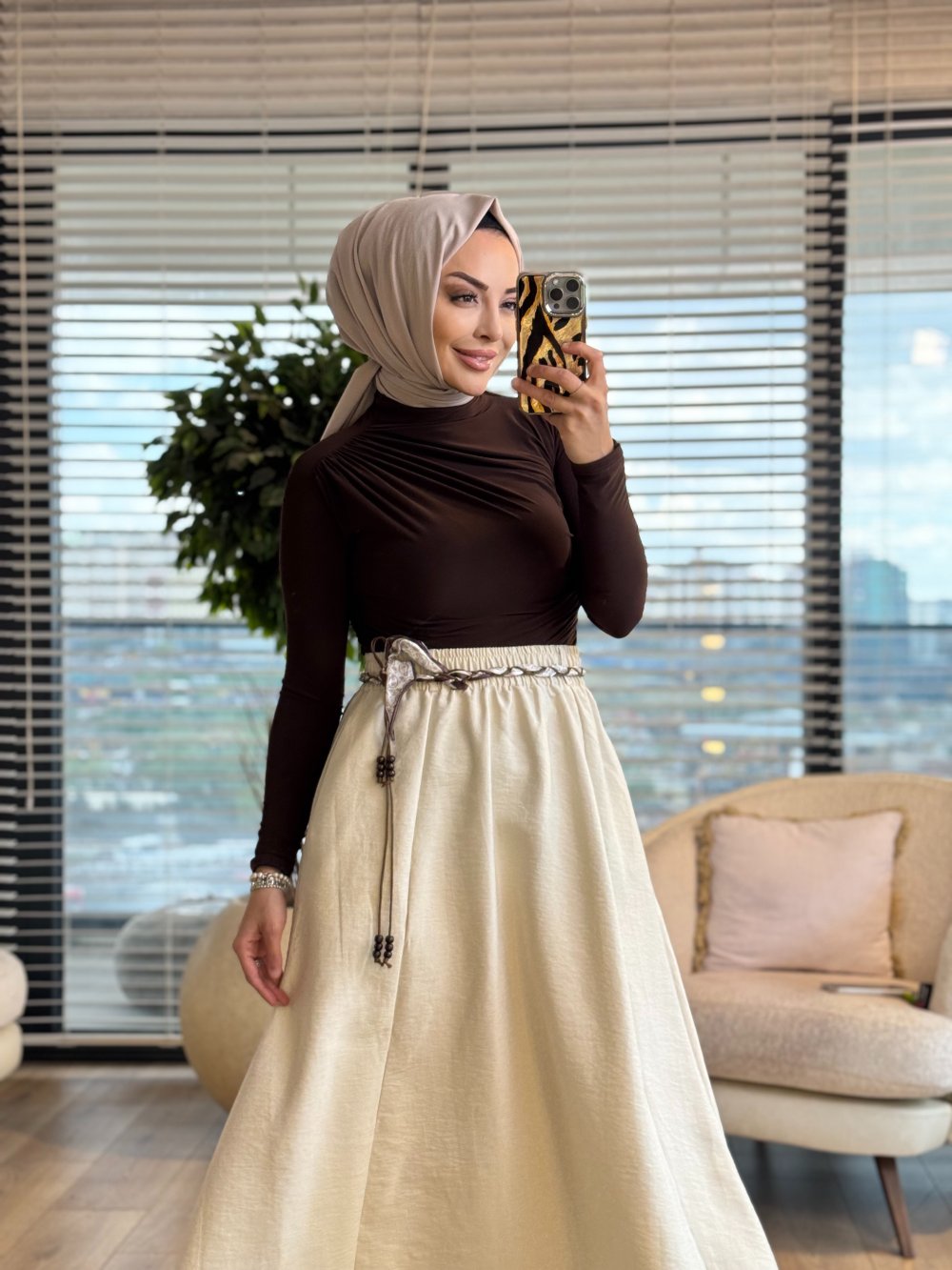 3375 Kemeri Detaylı Etek Bej