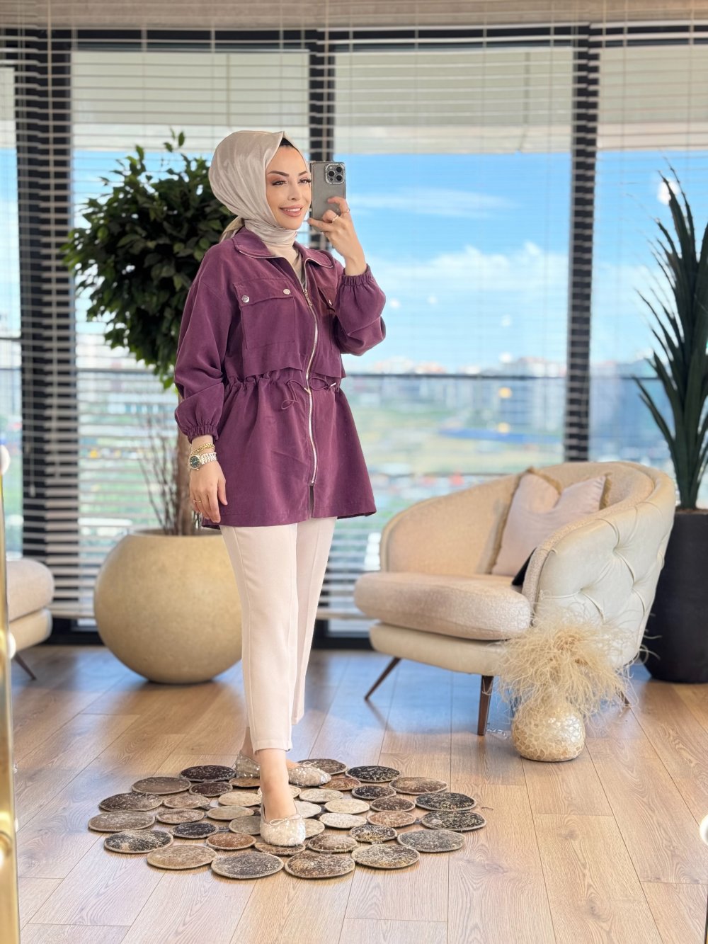 34082 Fermuarlı Dik Yaka Kap Bordo
