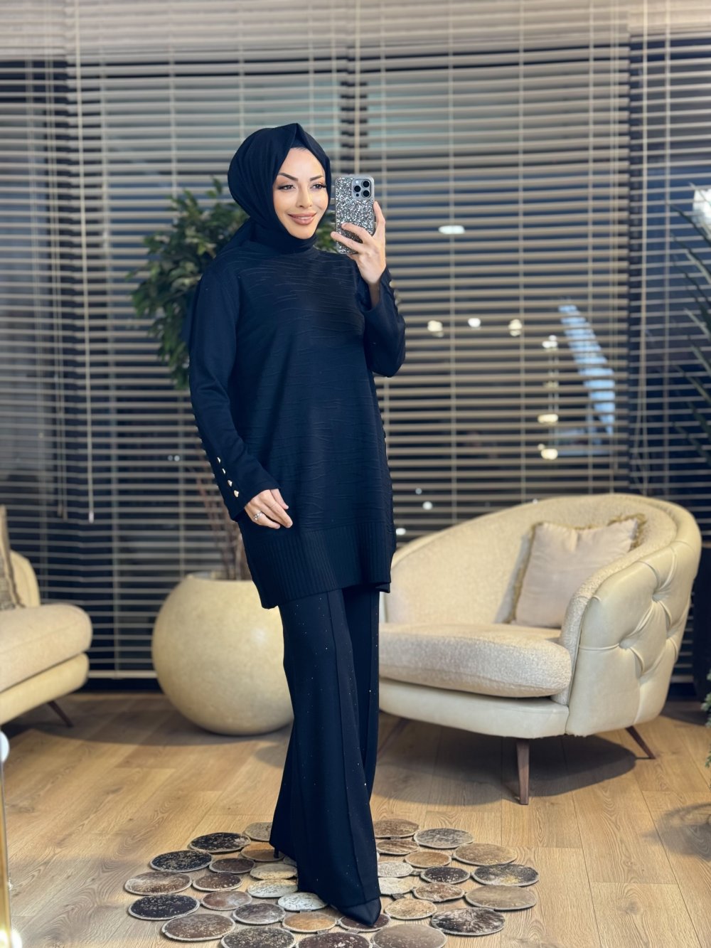 3503 Ön Kabartma Desenli Triko Tunik Siyah