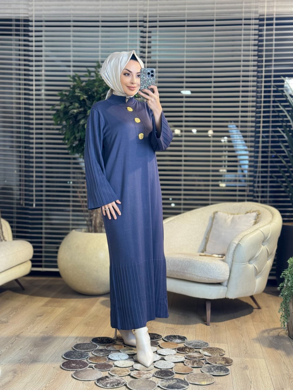 3507 Metal 3 Broşlu Triko Elbise Antrasit