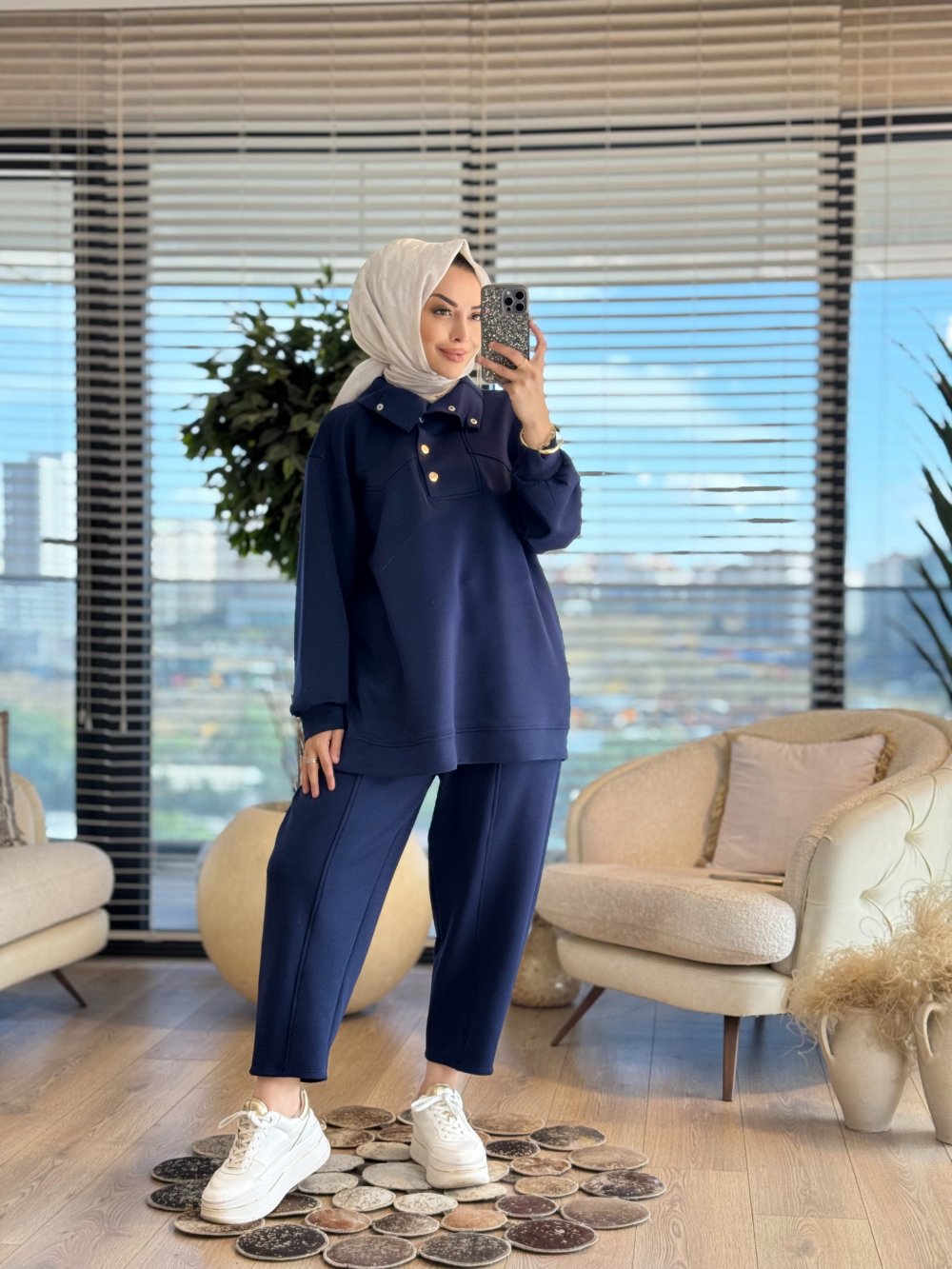 35792 Çıtçıtlı Yüksek Yakalı Takım Lacivert