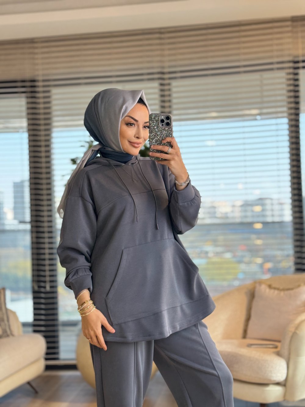 36056 Kesik Detaylı Kanguru Cepli Takım Antrasit